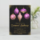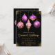 Host a festive and stylish ornament exchange with this luxurious black, purple and gold invitation. This design features a rich black background adorned with shimmering gold accents and five intricately illustrated hanging ornaments, each showcasing floral, snowflake and geometric patterns. This elegant layout sets the tone for a warm and celebratory seasonal gathering. Perfect for holiday swaps, office events or cozy get-togethers with friends and family.