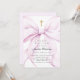 Coquette baptism invitation that features an elegant purple bow and a gold cross.