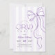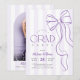 An elegant graduation invitation featuring a personalized photo of the graduate, paired with a refined purple bow illustration and modern striped details.