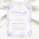 Celebrate a sweet baby shower with this elegant purple butterfly baby shower invitation featuring a soft arch-shaped layout and hand-drawn butterfly and bow illustrations.