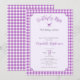 This cute purple gingham Butterfly Kisses and Baby Wishes baby shower invitation would be the perfect addition to your celebration. With a light purple gingham and a simple butterfly on a lavender background, it's a gender-neutral choice for a baby shower or gender reveal party.