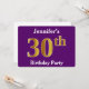 Invitación Purple, Faux Gold 30th Birthday Fiesta; Nombre per