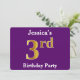 Invitación Purple, Faux Gold 3Birthday Fiesta + Custom Name