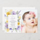 Invite friends and family in style and set the tone for your special day with this elegant baptism invitation. Design features purple and yellow watercolor flowers and greenery on white background.