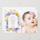 Invite friends and family in style and set the tone for your special day with this elegant first holy communion invitation. Design features purple and yellow watercolor flowers and greenery on white background.
