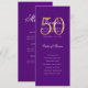 Invitación Purple Gold 50th Birthday Party Program con Menú