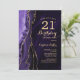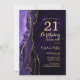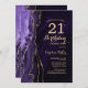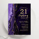 Invitación a la fiesta de cumpleaños 21 del color púrpura y dorado. Elegante diseño moderno con fondo geodésico de mármol agate acuarela, oro falso purpurina y tipografía de escritura. La carta de invitación de moda es perfecta para una elegante celebración del cumpleaños de las mujeres. Invitaciones Zazzle impresas o una plantilla imprimible digital de descarga instantánea.