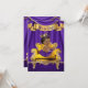 Purple and gold princess baby shower invitations with adorable baby girl wearing a pretty purple tutu and pearls with purple and gold crown on a beautiful purple and gold chair and curtain background. These pretty purple and gold baby shower invitations are easily customize for your event by simply adding your details in the font style you prefer.