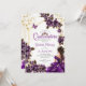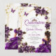 Invitación Purple Golden Tiara Roses Butterfly Quinceañera