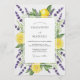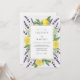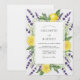 A vibrant design featuring sunny yellow citrus slices interwoven with delicate sprigs of purple lavender and lush green foliage. Evokes a fresh, cheerful, and natural atmosphere for a memorable occasion.