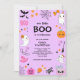 Purple Our Little Boo Cute Fantasma Chica Halloween 2nd Birthday Invitation.