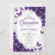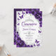 Purple silver and white Quinceanera celebration invitation. Features script font, silver butterflies, watercolor roses and tiara. Perfect for an elegant princess style glam celebration. Personalize with your own details. Printed Zazzle invitations or instant download digital printable template.