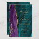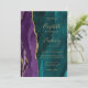 Invitación Purple Teal Gold Agate QR Code Wedding