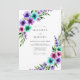 This design features a vibrant array of hand-painted watercolor florals in shades of purple, teal, and magenta. Delicate anemones and sprigs of lavender create a whimsical floral arrangement. The lush greenery adds a fresh, organic feel to the composition. Perfect for a breezy seasonal event, this botanical artwork evokes a sense of romance and modern elegance.
