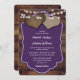 Invitación Purple Wood Burlap Hearts String Lights Boda