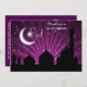 Ilustracion islámico con las siluetas de la luna, de estrellas y de una mezquita en un cielo nocturno púrpura.