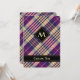 Diseño morado, amarillo dorado y azul tartán. Patrón sin foco. texto personalizado y monograma.