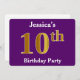 Invitación Púrpura, Faux Gold 10th Birthday Party; Nombre per