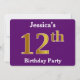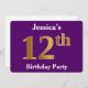 Invitación Púrpura, Faux Gold 12th Birthday Party; Nombre per