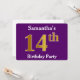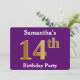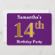 Invitación Púrpura, Faux Gold 14th Birthday Party; Nombre per