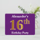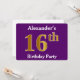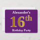 Invitación Púrpura, Faux Gold 16th Birthday Party; Nombre per
