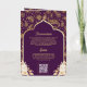Invitación Púrpura Gold Paisley Floral QR Código Indio Boda
