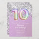 Invitación a la fiesta de cumpleaños del purpurina arcoiris para un chica de 10 años con escritura elegante de escritura y globos de Relieve metalizado divertidos.