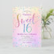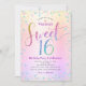 Invitación Purpurina arcoiris Ombre Script Dulce 16 Cumpleaño