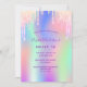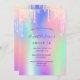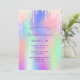 Invitación a una fiesta de cumpleaños 16 y 16 mujeres. Delante: fondo de color arcoiris morado, rosa, verde menta, oro rosa. Decorado con purpurinas falsos gotean en oro morado, rosa y falso. Personalice y agregue un nombre y detalles del fiesta. El nombre está escrito con un guión de estilo con letras a mano, letras de color púrpura. Atrás: colores arcoiris y goteos falsos purpurinas. Hay una invitación de fiesta virtual coincidente disponible en nuestra tienda.