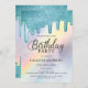 Invitación Purpurina azul arrastra el arcoiris Holográfico cu