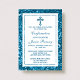 Invitación Purpurina Azul Cruce Santa Comunión O Confirmación