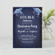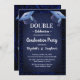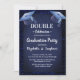 Invitación Purpurina Azul Dos Graduados Doble Graduación