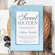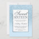 Moderna moda de bonito y elegante ducha de purpurina azul falso oscuro con el color azul pastel bloque de color azul pastel Invitación a la fiesta de 16 años dulce con un patrón oscuro azul que se desvanece en un fondo azul con y elegante marco dorado.