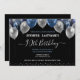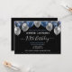 Invitación Purpurina Azul Globos Fiesta de cumpleaños 90