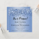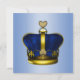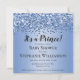Una brillante invitación azul para la ducha de bebé le dice al mundo que un principito está en camino. El frente de la invitación es una imagen metálica azul con un brillante purpurina azul sobre la mitad superior. El otro lado de la carta es todo azul, con una magnífica corona dorada y azul de terciopelo, ¡apto para cualquier nuevo príncipe! Todos los detalles se pueden cambiar fácilmente según sea necesario.