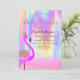 Invitación Purpurina Bokeh, Flamingo, Ombre Holográfico