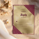 Este romántico y elegante purpurina burdeos y dorado confeti corazón geométrica boda de lujo RSVP Invitación se inspira en la sencillez y elegancia pero con sutiles toques de influencia moderna. Cuenta con un corazón dorado glam con un fondo dorado brillante y burdeos brillante. Este diseño clásico y lujoso será un gran éxito para todos sus huéspedes. Todos los diseños están impresos.