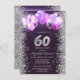 Invitación Purpurina Confetti Globos Morado 60 cumpleaños