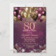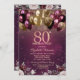 Invitación Purpurina de Borgoña Flores de globo celebra su cu