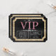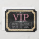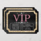 Esta glamorosa y femenina invitación a la fiesta personalizado presenta un diseño de estilo hollywoodiense de apariencia brillante sobre un fondo negro con texturas. Una frontera de diamantes de oro encuadra la invitación. La palabra VIP se imprime en un purpurina rosado caliente. Los bordes del diamante acentúan la etiqueta VIP rosa.
