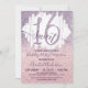 Esta elegante, artística y jovencita invitación a celebrar dieciséis años es perfecta para tu joven chica adolescente. Representa un falso purpurina lila nítida morado y un gradiente rosa rosa oscuro en el frente con una tipografía de escritura de pincel blanco personalizado encima de un fondo blanco de pincel. En la parte trasera hay laca púrpura y color rosa oscuro deslumbrante. Es elegante, moda, moderno, glamuroso y bonito.