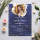 Una invitación moderna, elegante y glamurosa para una fiesta de cumpleaños de 21 (o cualquier edad). Un fondo azul marino, decorado con brillantes azules y purpurinas de oro fino y globos dorados. El color azul es desigual. Personaliza y agrega tu nombre, foto y detalles del fiesta. Un marco fotográfico al estilo de un balón.