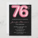 Invitación de cumpleaños 76 del Purpurina de globo negro rosado Glam