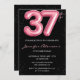 Invitación de cumpleaños 37 del Purpurina de globo negro rosa Glam
