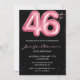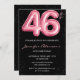 Invitación Purpurina de globo negro rosa Glam 46º cumpleaños