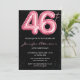 Invitación de cumpleaños 46 del Purpurina de globo negro rosa Glam