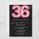 Invitación de cumpleaños 36 del Purpurina de globo negro rosado Glam