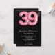 Invitación Purpurina de globo negro rosa Glam en 39 años