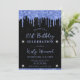 Invitación Purpurina de goteo azul en Black Bokeh 21st Birthd