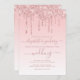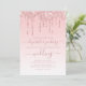 Moda, diseño moderno con un fondo rosa oscuro con un borde de goteo rosa purpurina. La palabra "boda" y los primeros nombres de la pareja aparecen en el guión de caligrafía minúscula con cambios decorativos al principio y al final, con el texto restante en letra sans serif. El fondo rosado oscuro y el borde de goteo purpurina se repiten al revés. (Para mantener los cambios, reemplace sólo las letras, dejando los símbolos en su lugar.)